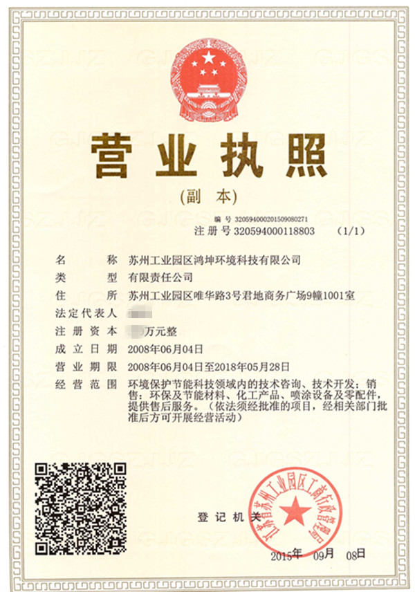 蘇州工業園區鴻坤環境科技有限公司 地址:蘇州工業園區唯華路3號君地中心9幢1-11樓