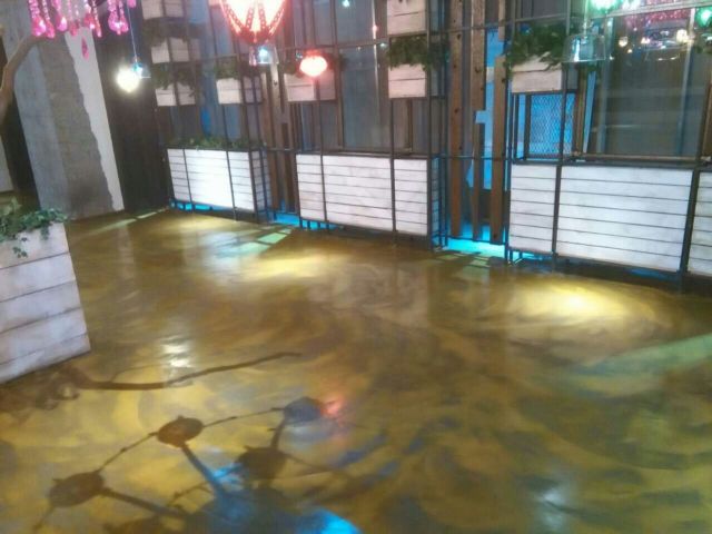 環(huán)保要求高的辦公室,酒店地坪,畫展中心,餐廳地面,咖啡廳,酒吧等,根據(jù)燈光布局不同的地面顏色,形成一個(gè)整體的氛圍。